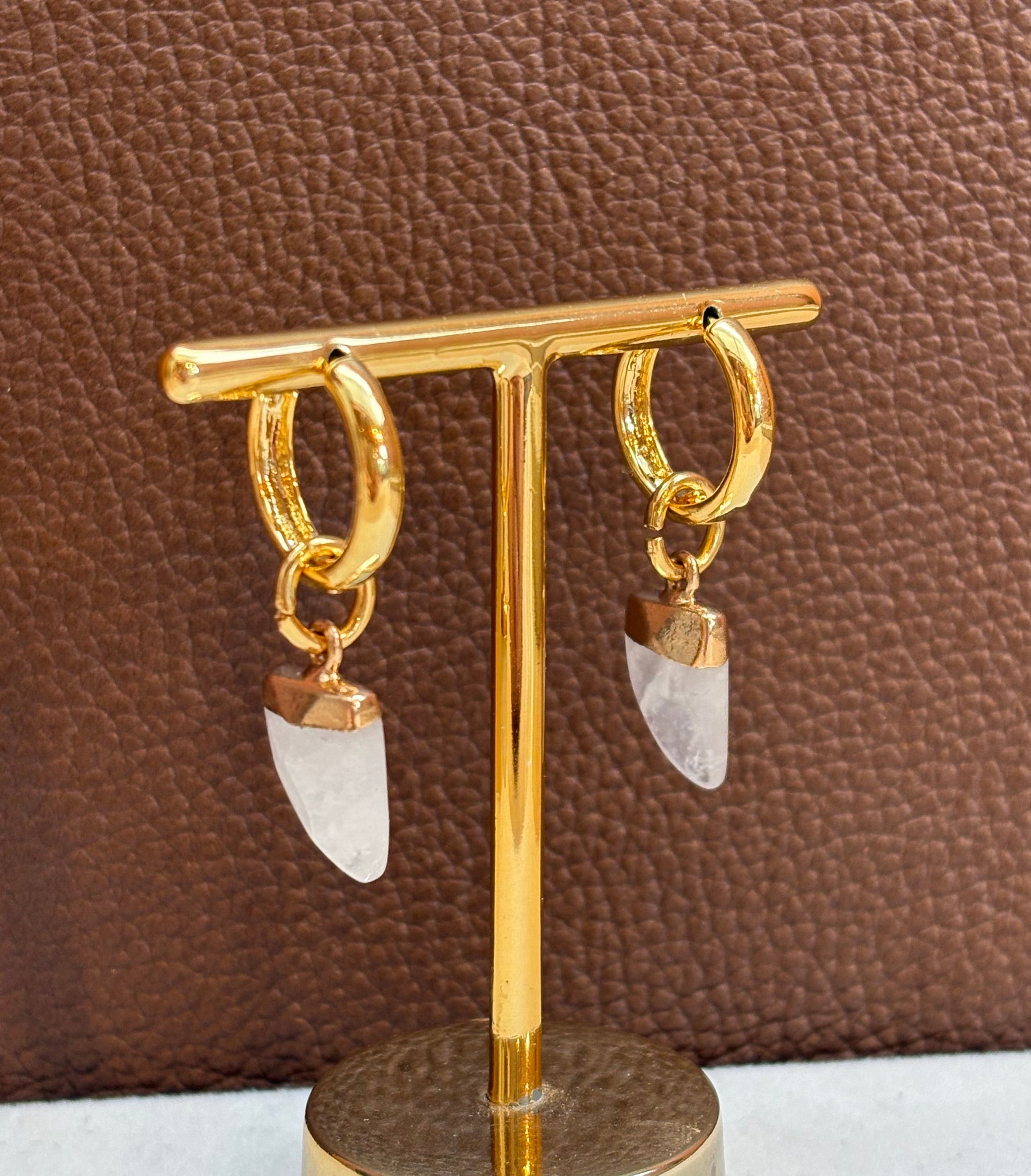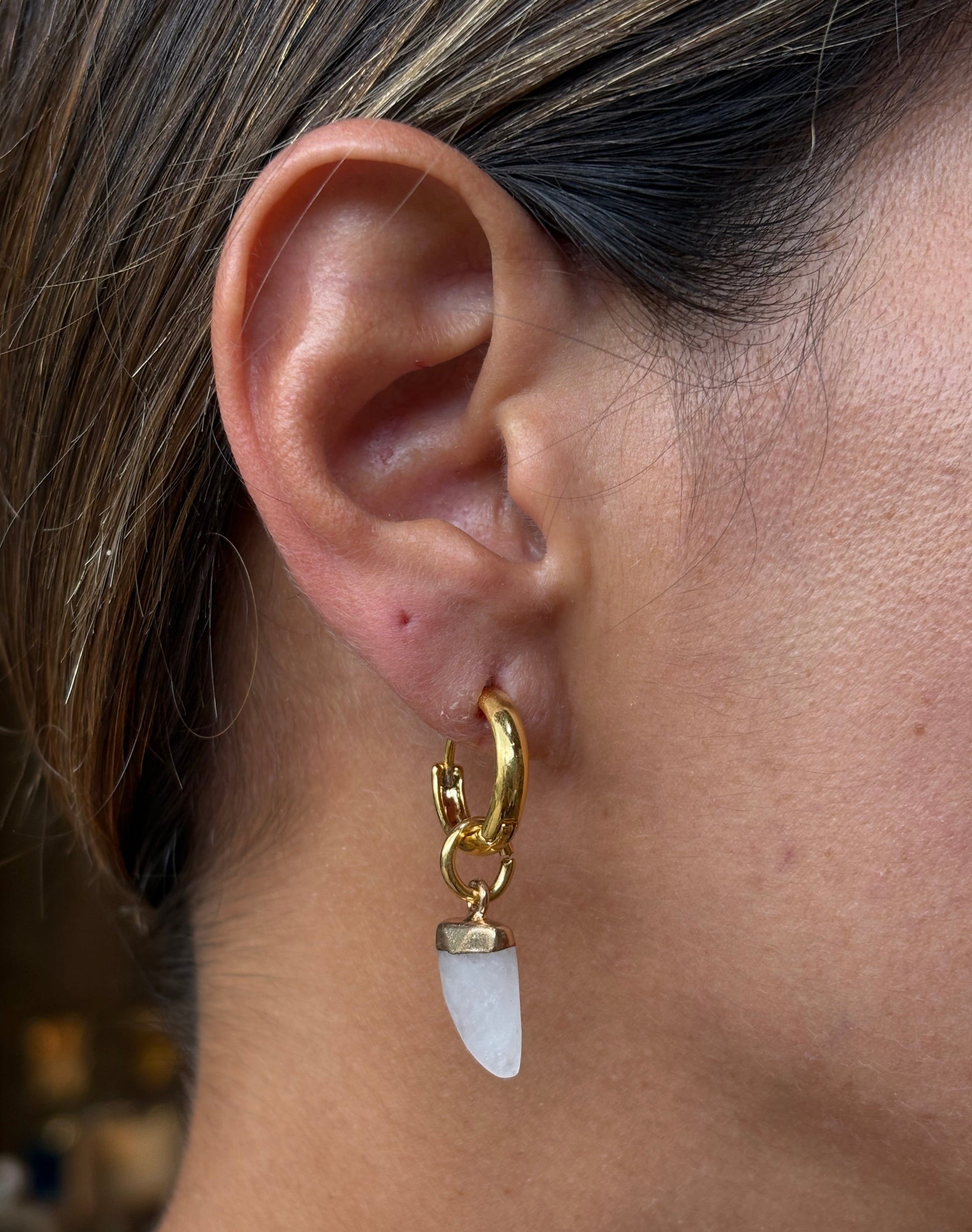 Brinco Argola Mini Dente Quartzo Branco