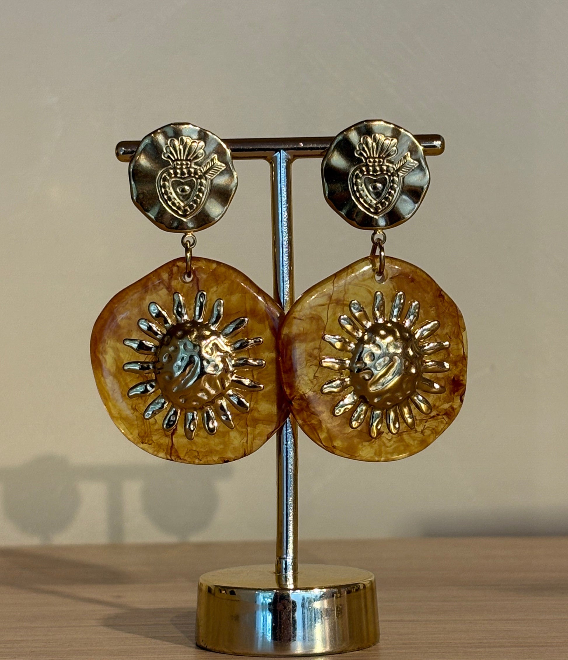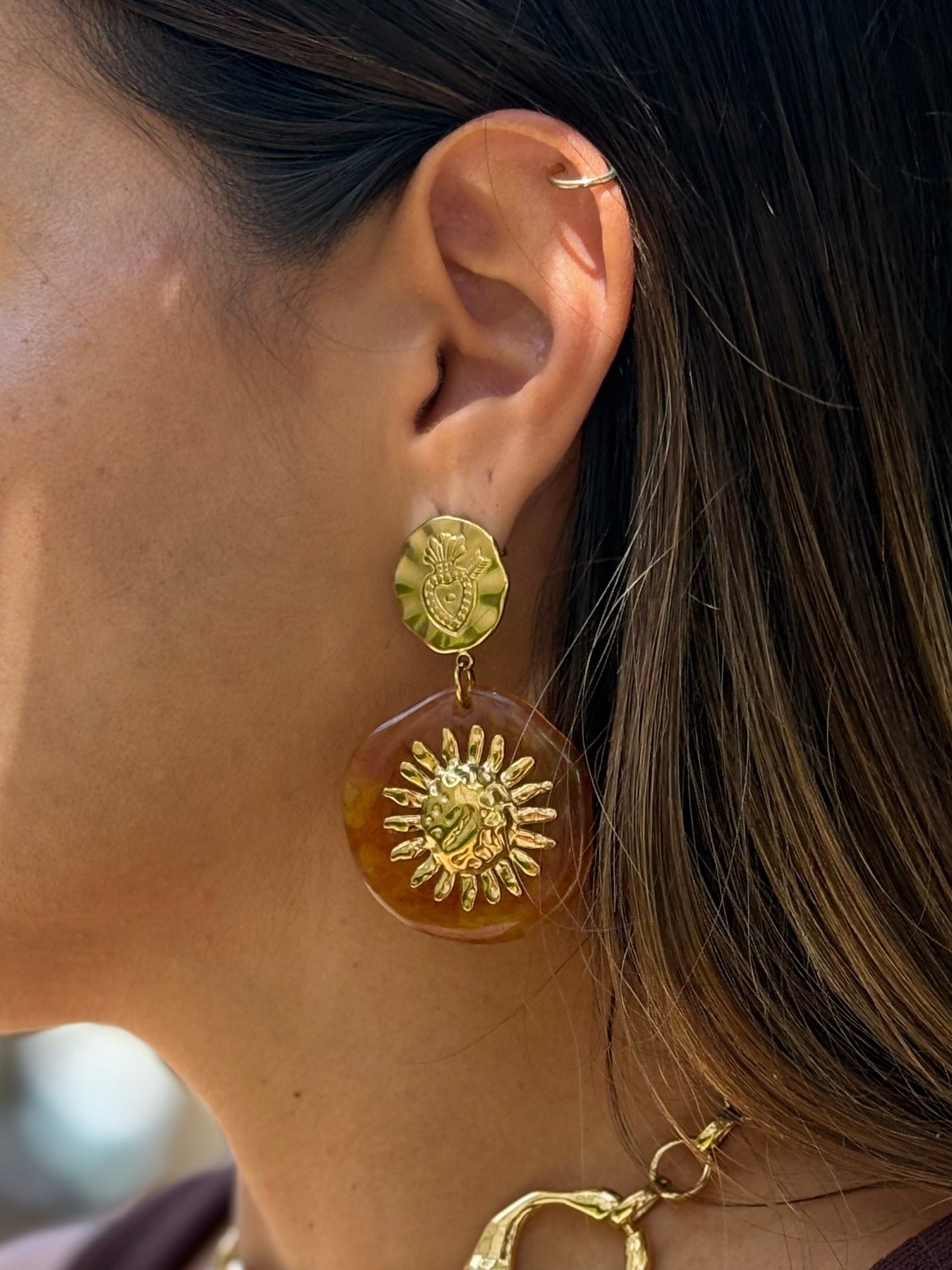 Brinco Inca Resina Marrom