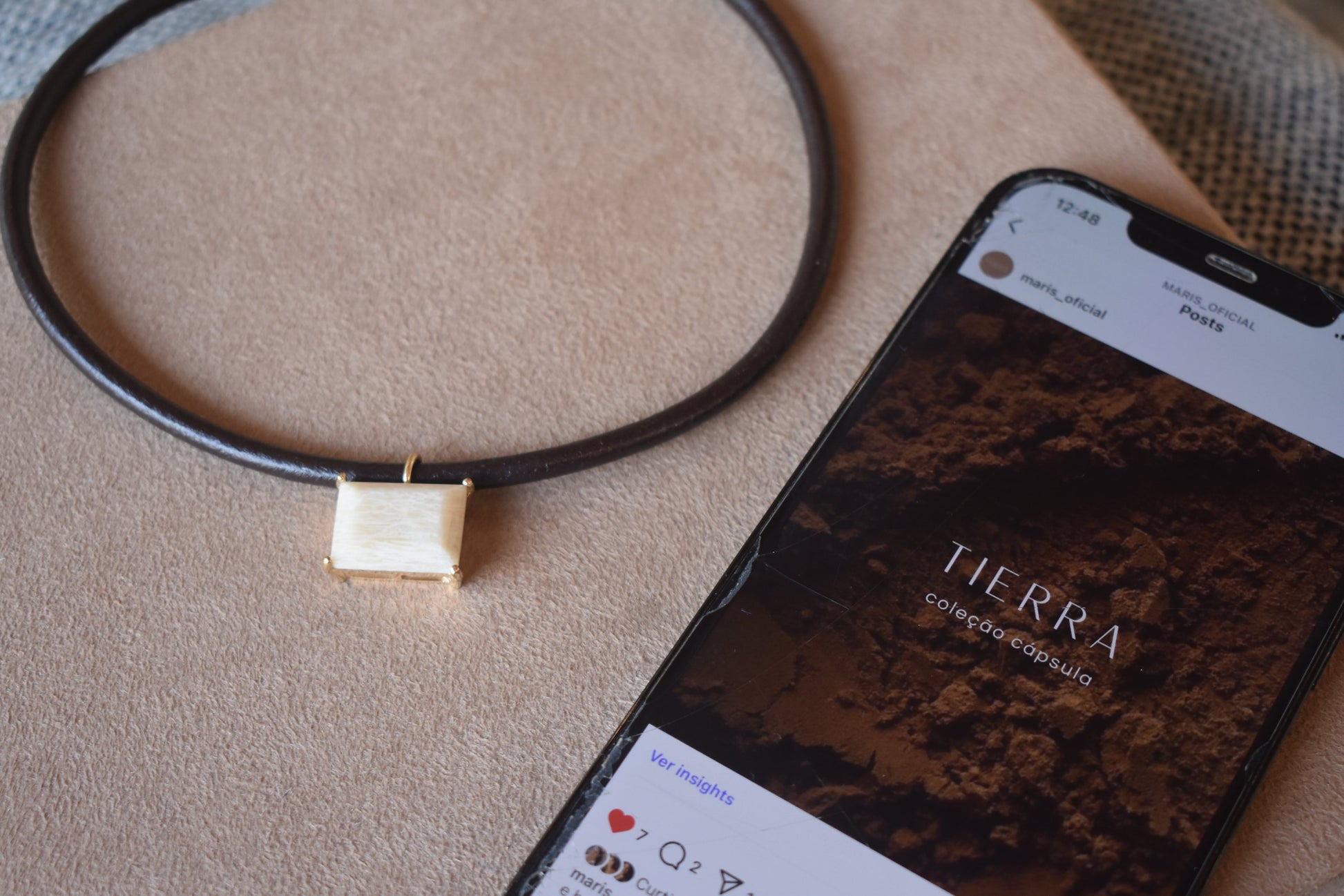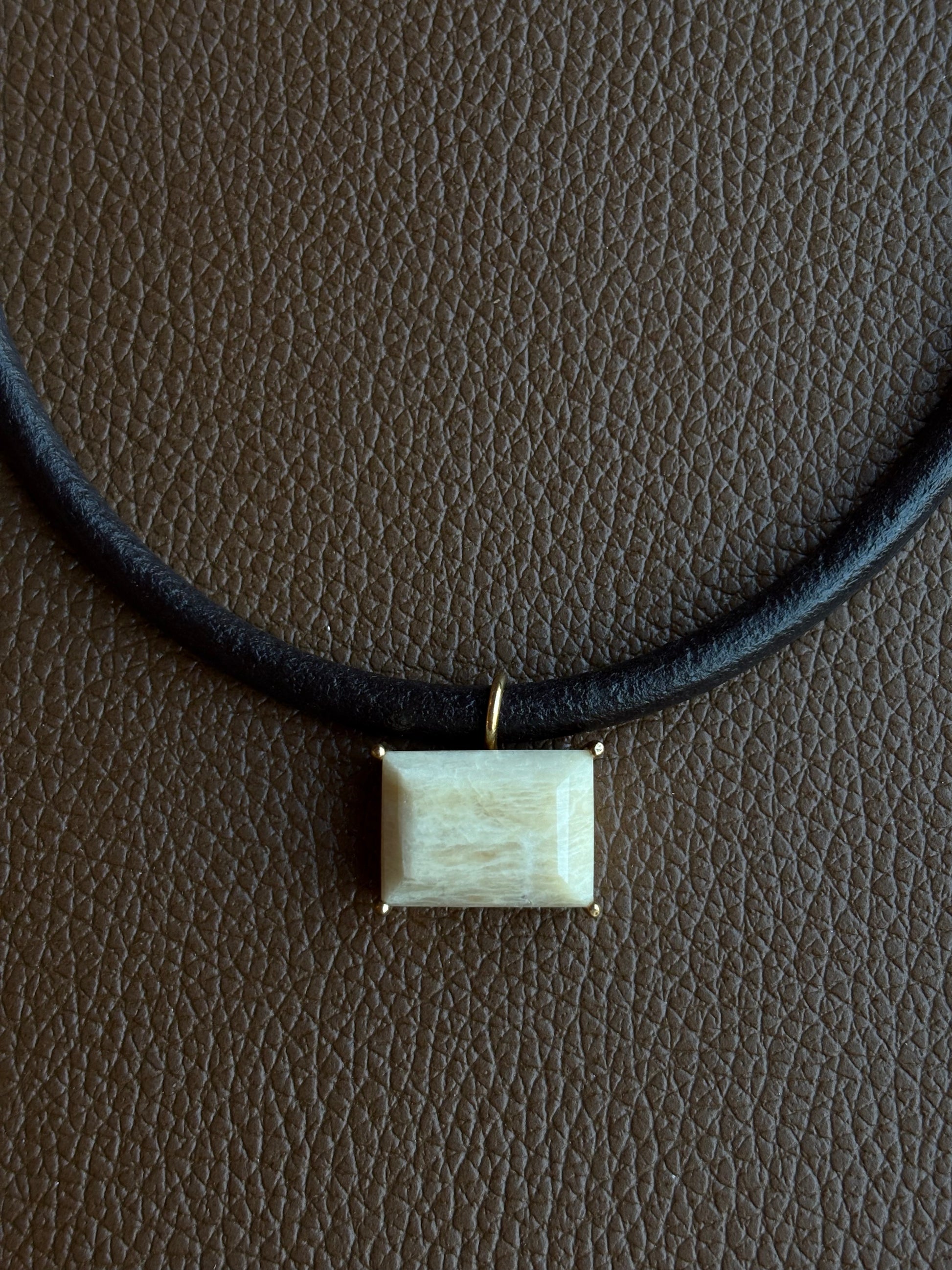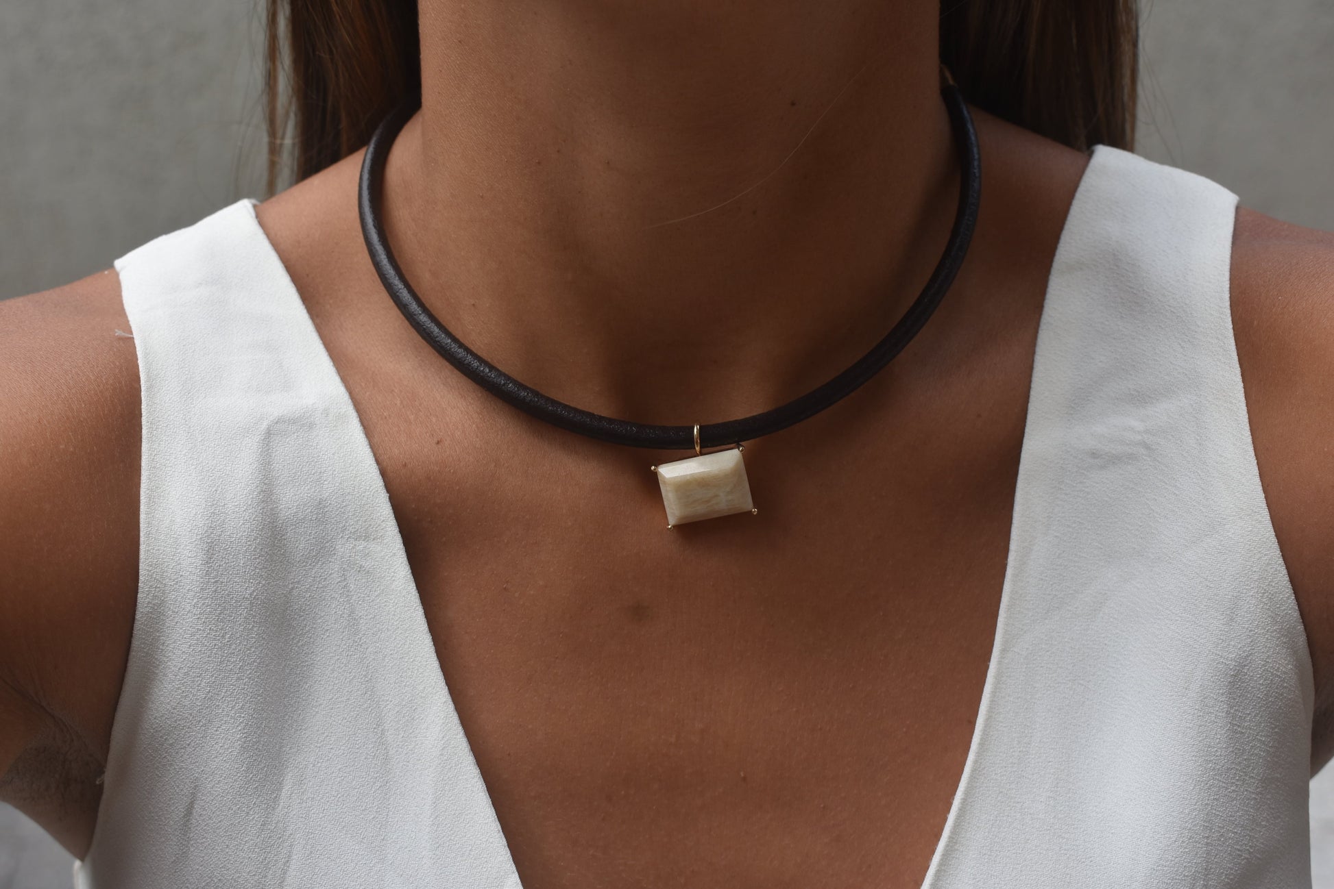 Colar Couro Amazonita Bege