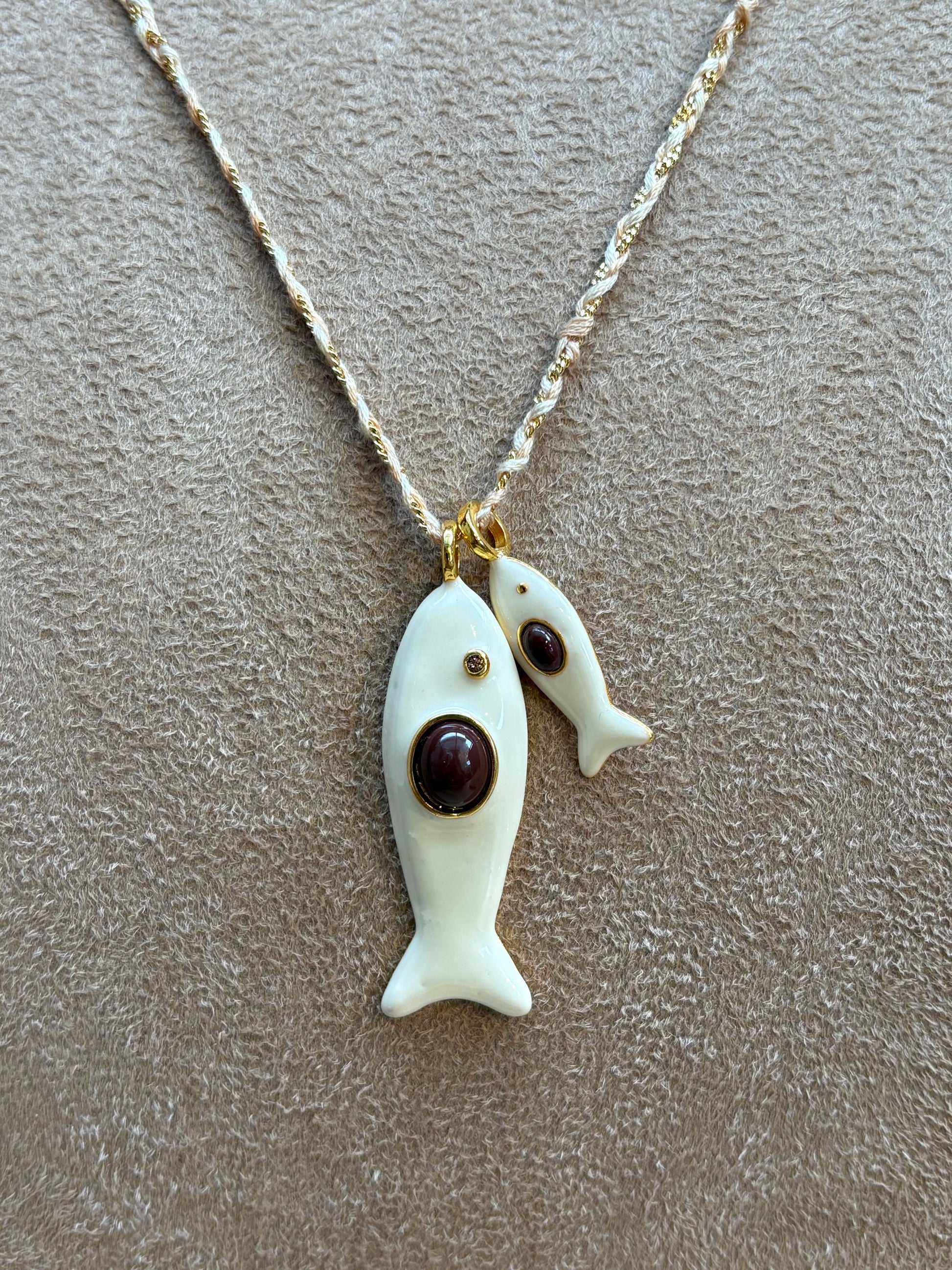 Colar Longo Double Fish White