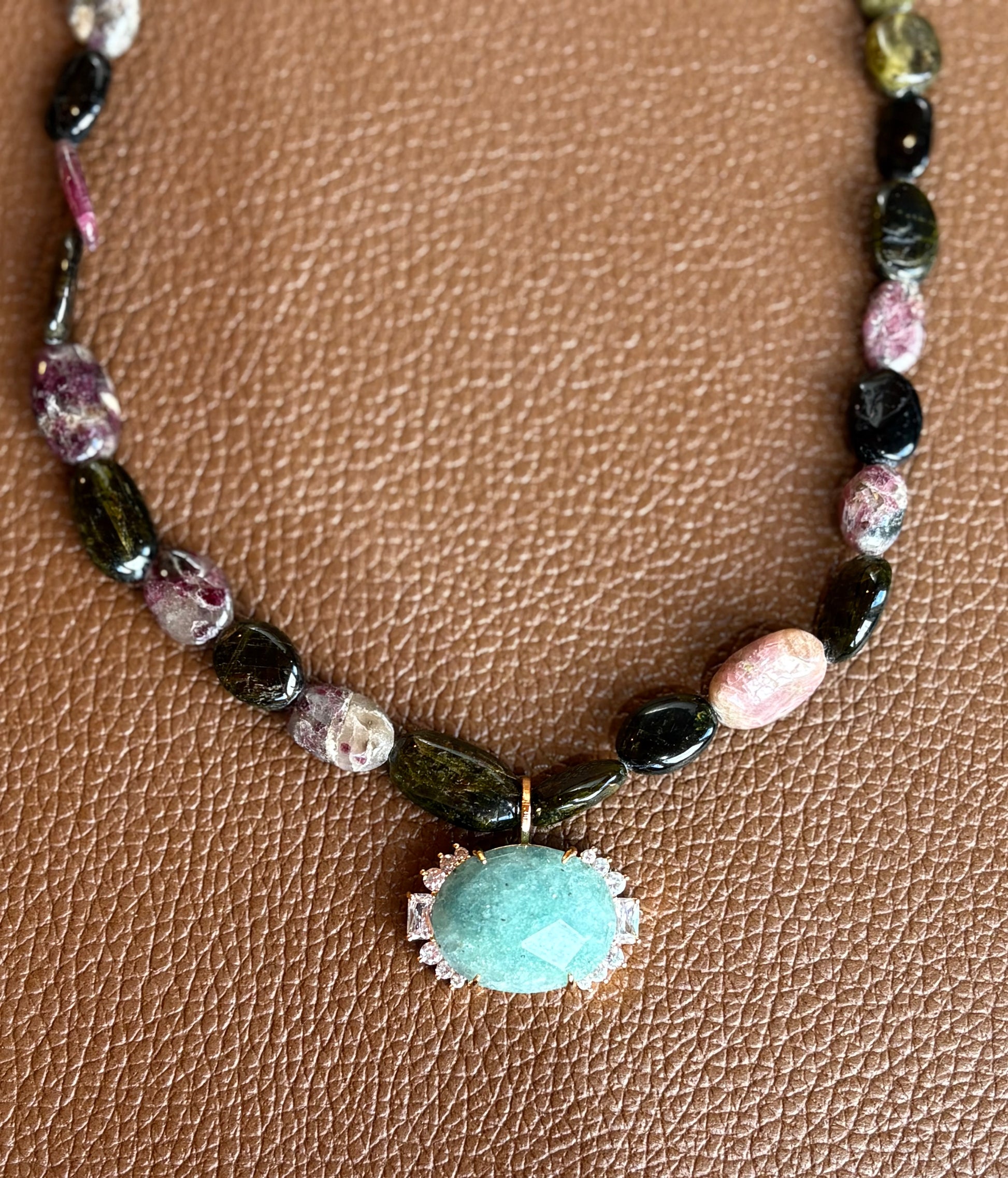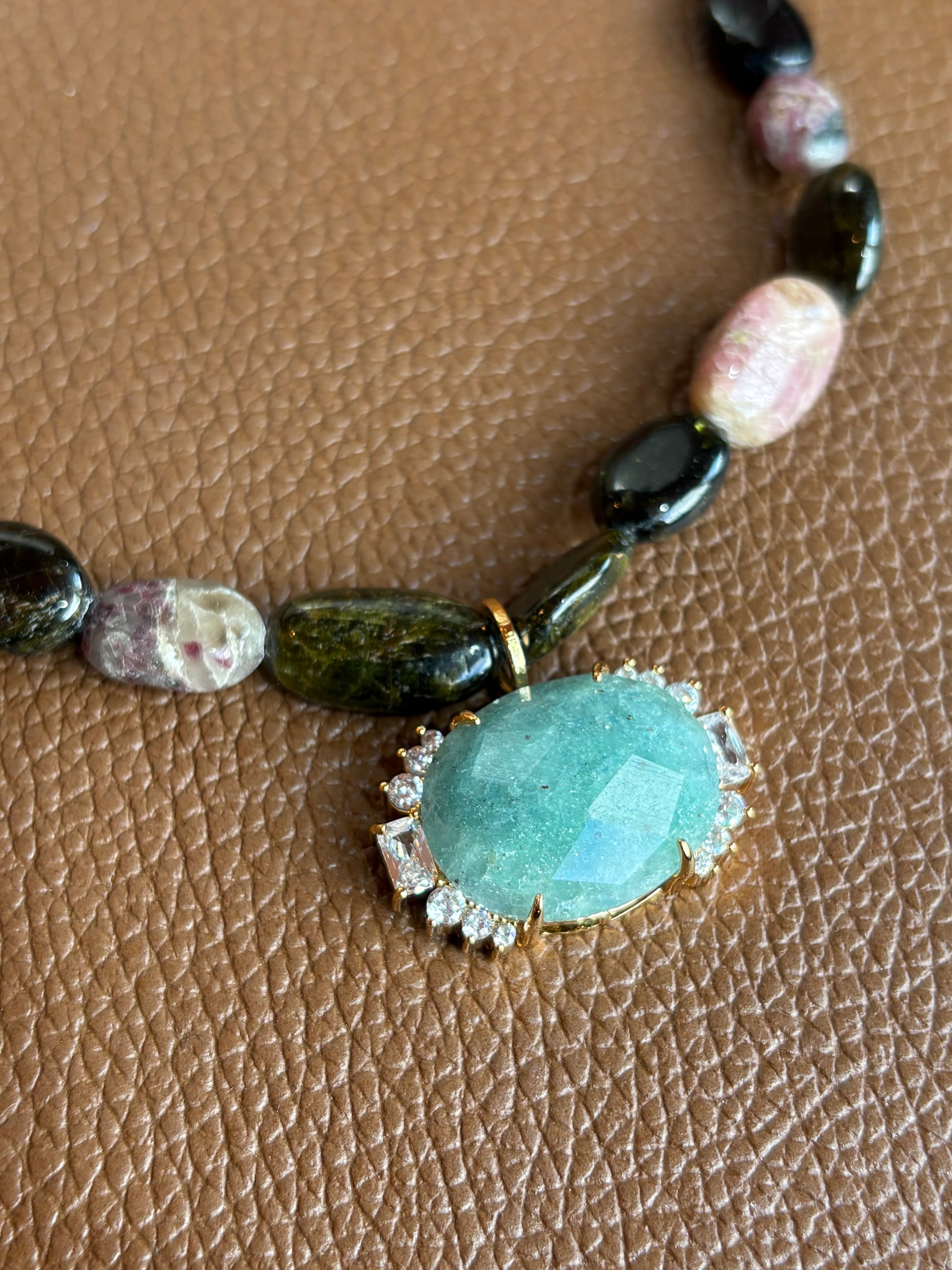 Colar Serene Turmalina Melancia com Aventurina Verde